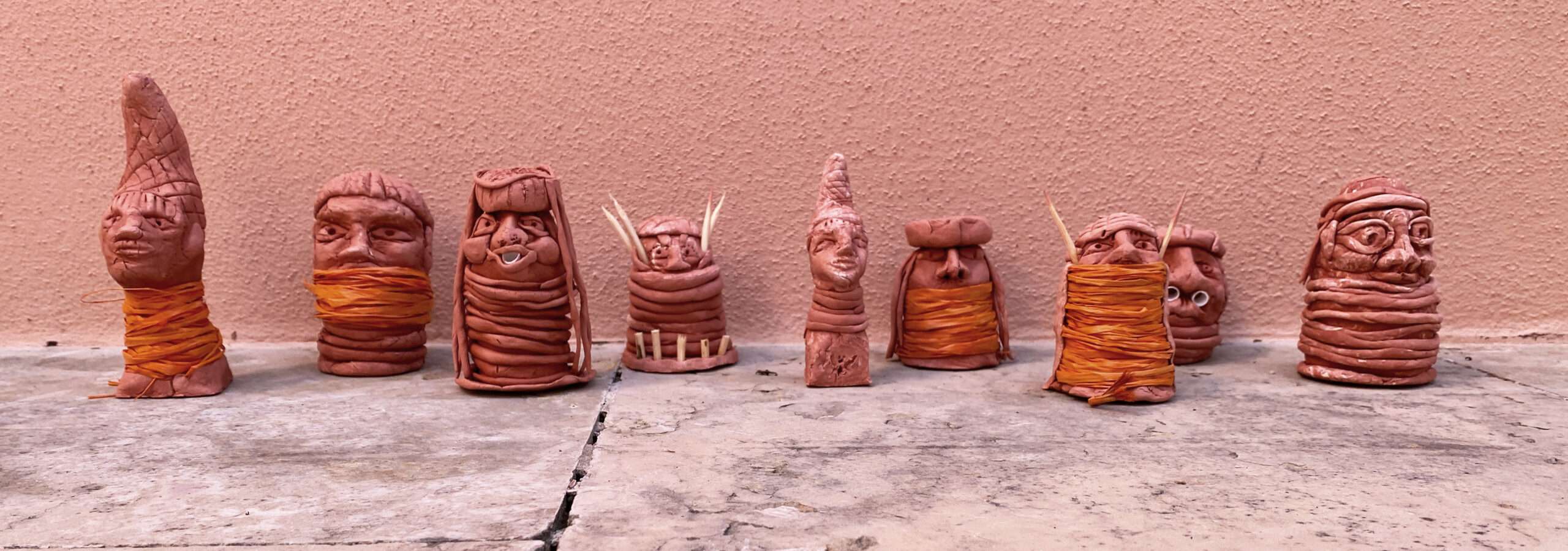 Inspired by the “Oba heads” exhibited in the Humboldt Forum Berlin, I modeled a series of terracotta. Later I placed these in various constellations in nature, “channeled” them and from them wrote texts about an “invisible world and unheard voices”. The connection between the visible and the invisible is rooted in African art to this day and helped me to develop dialogues, scenic conflicts of the five characters as well as monologues of the choir.
